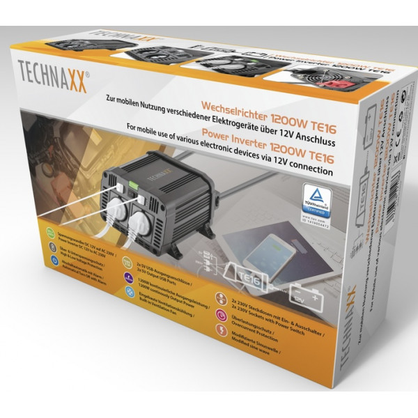 Змінює живлення акумулятора 12 В постійного струму на стандартне 230 В змінного струму (побутова) електроенергія для роботи різноманітної електроніки, напр. таблетки, смартфони, ноутбуки, ігрові системи, телевізори, DVD/MP3-плеєри, аксесуари для кемпінгу, пристрої GPS та багато іншого.