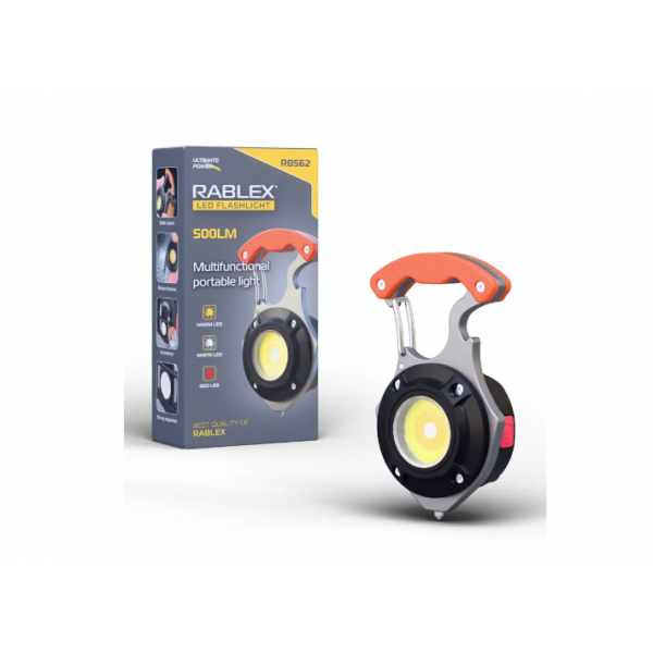 Ліхтар Rablex RB562 обладнаний потужним COB джерелом світла, яке забезпечує яскраве та рівномірне освітлення. Цей ліхтар має три режими роботи: білий, жовтий та червоний світло, що дозволяє вибирати потрібне освітлення в залежності від ситуації. Біле світло ідеально підходить для загального освітлення, жовте — для створення затишної атмосфери, а червоне — для збереження нічного зору та запобігання привертанню уваги диких тварин.