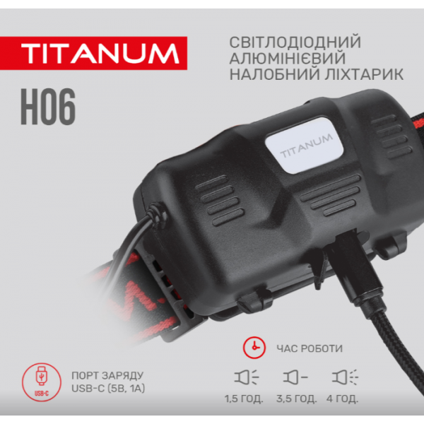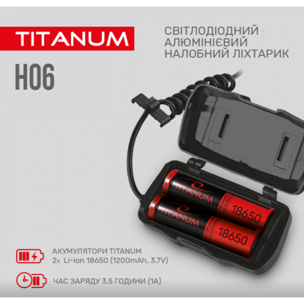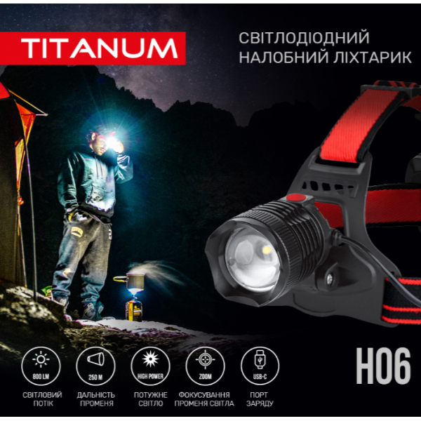 Налобний світлодіодний ліхтарик TITANUM TLF-H06 800Лм 6500K має надійну конструкцію та зручний налобний ремінь, який легко відрегулювати під себе. В комплект входять 2 акумулятори. Також ліхтар має широкий спектр застосування, а завдяки червоному світлу, яке знаходиться на потилиці в процесі використання, робить вас добре помітним у при та не сліпить людей позаду вас. Зарекомендував себе добре серед велосипедистів, риболовів туристів та використання у побуті. Особливістю даної моделі є можливість регулювання фокусу променю світла. Також ліхтарик має механізм нахилу, який дозволяє регулювати кут освітлення.