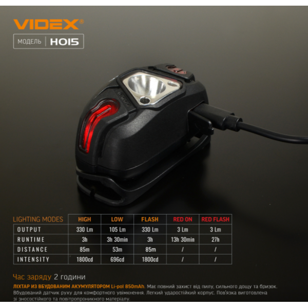 Налобний світлодіодний ліхтарик VIDEX H015 VIDEX 330Lm 5000K призначений для індивідуального використання в темний час доби або в приміщеннях без освітлення. Основними показниками є герметичність, надійний корпус, дальність світла. Дозволяє обрати необхідний режим роботи. Максимальна яскравість 330 Lm. Регульований кут нахилу кріплення дозволяє обрати зручний кут освітлення.