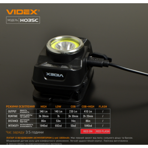 Налобний світлодіодний ліхтарик H035C VIDEX 410Lm 5000K призначений для індивідуального використання в темний час доби або в приміщеннях без освітлення. Основними показниками є герметичність, надійний корпус, дальність світла. Дозволяє обрати необхідний режим роботи. Максимальна яскравість 410Lm. Регульований кут нахилу кріплення дозволяє обрати зручний кут освітлення.