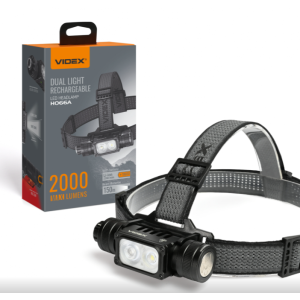 Налобний світлодіодний ліхтарик VIDEX VLF-H066A 2000Lm 5000K. Має біле та червоне світло. Біле світло має режими дальнього та ближнього світла. Завдяки магнітній основі, наявності механічного перемикача, класу захисту від пилу та вологи (IP67) та класу захисту від падіння до 2м він має велику кількість сценаріїв для використання. Працює від змінного акумулятора Li-ion 18650 ємністю 2200mAh.