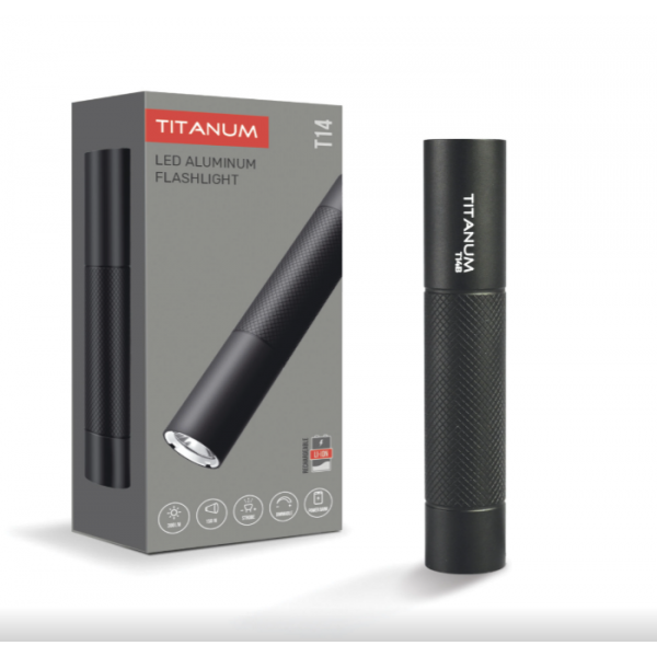 Портативний ліхтарик TITANUM з акумулятором має компактні розміри, зручну ергономічну форму та працює від вбудованого акумулятора. Особливостями даної моделі є: регулювання яскравості для основного режиму та регулювання частоти мерехтіння для режиму стробоскоп та додатковий вихід USB для заряджання зовнішніх пристроїв (функція power bank). Підходить для застосування у якості кишенькового ліхтарика та як резервного джерела освітлення.