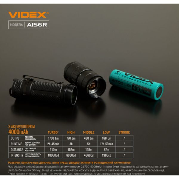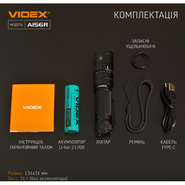 Портативний світлодіодний ліхтарик VIDEX VLF-A156R 1700Lm 6500K