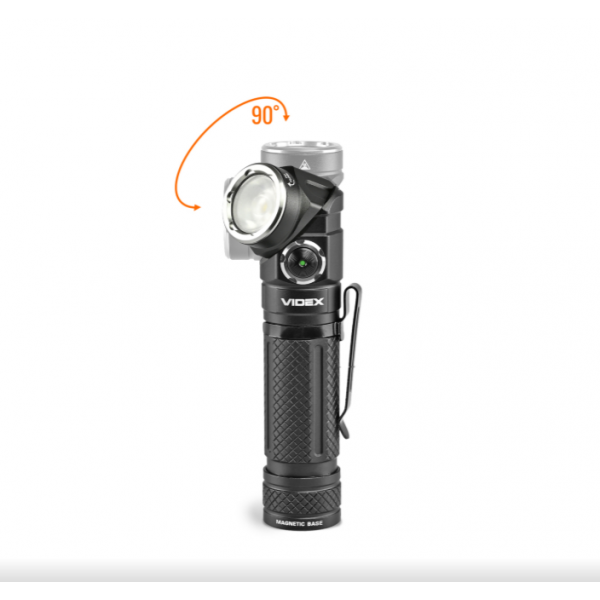 Зручний поворотний механізм для використання як звичайного ліхтаря так і налобного. За допомогою магнітної торцевої кришки ліхтар швидко кріпиться до будь-якої металевої поверхні.
