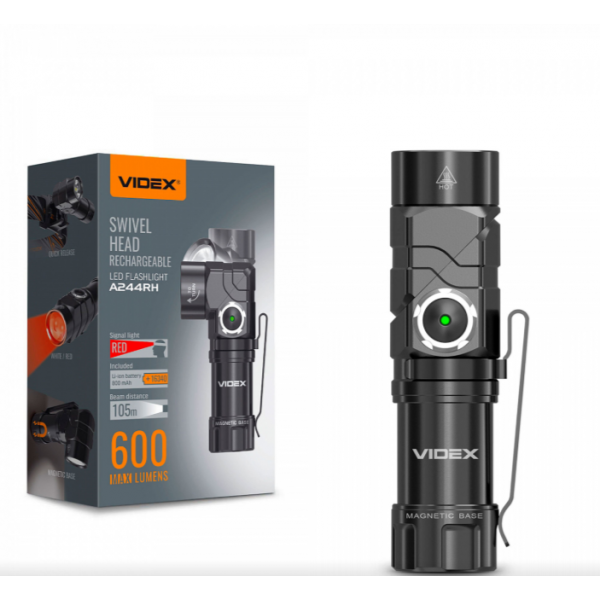 Портативний світлодіодний ліхтарик VIDEX VLF-A244RH 600Lm 5000K призначений для індивідуального використання в темний час доби або в приміщеннях без освітлення. Основними показниками є можливість повороту голови ліхтарика, магнітна основа, надійний корпус, дальність світла та два діоди червоного світла. Дозволяє обрати необхідний режим роботи.