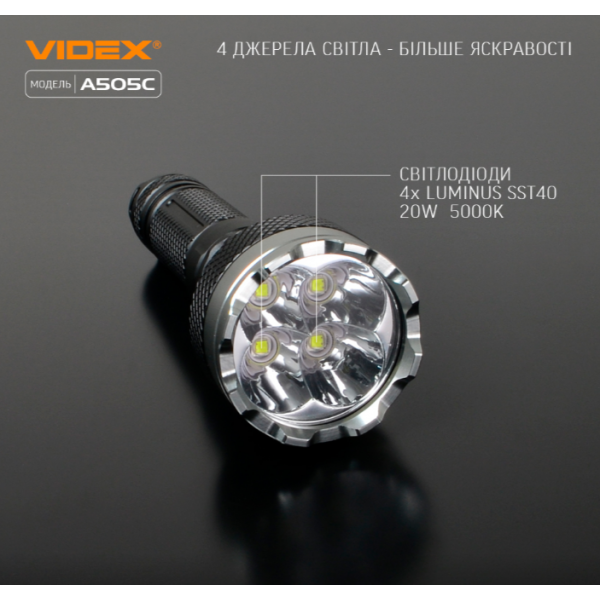Портативний світлодіодний ліхтарик VIDEX VLF-A505C 5500Lm 5000K - має потужний промінь світла котрий далеко та яскраво світить. Підійде в якості пошукового ліхтаря та для освітлення охоронюванної території під час патрулювання. Основними показниками є герметичність, надійний корпус, дальність світла. Дозволяє обрати необхідний режим роботи.