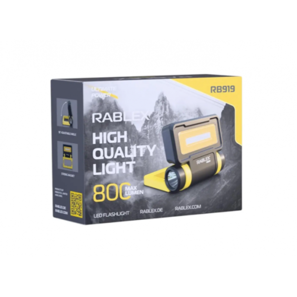 Легкість у перенесенні забезпечується ручкою-ліхтарем, що робить прожектор зручним для використання в будь-яких умовах. Ви можете взяти його з собою на природу, використовувати в гаражі або навіть у домі для освітлення темних куточків. Прожектор Rablex RB919 легко встановлюється на поверхню, що дозволяє використовувати його як стаціонарне джерело світла.