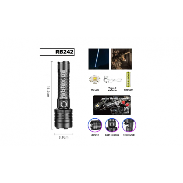 Ручний ліхтар Rablex RB242 / type-c / XH P99 LED відрізняється своєю високою яскравістю, довговічністю та багатофункціональністю. Його світлодіодне джерело світла генерує яскраве біле світло, яке ідеально підходить для освітлення темних приміщень або зовнішніх територій. Працюючи від акумулятора 18650, ви можете бути впевнені у тривалому часі функціонування пристрою без необхідності частого заряджання. Енергозбереження та ефективність - важливі якості, які роблять використання цього ліхтаря комфортним і практичним у будь-яких умовах.