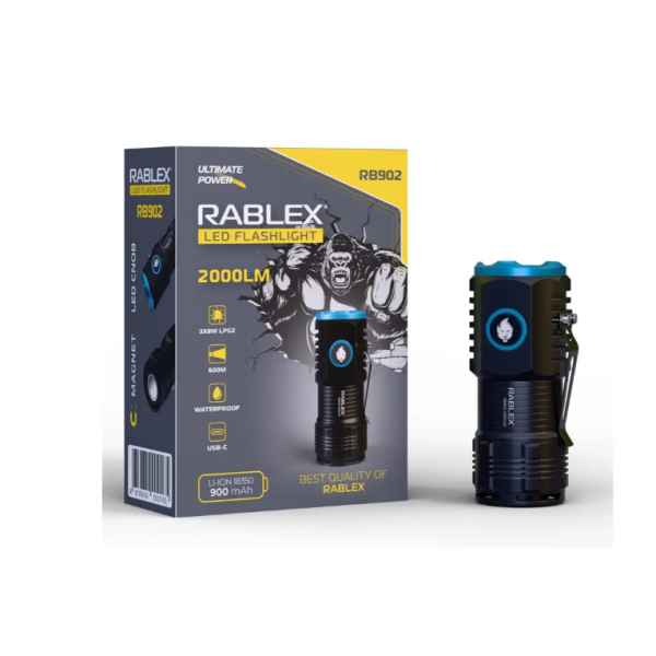 Міні-ліхтарик пропонує шість різних режимів освітлення: від дуже яскравого світла до режимів низької яскравості та SOS. Це робить його універсальним інструментом для будь-яких умов. Просто натисніть кнопку – і ваш Rablex RB902 адаптується до ваших потреб, будь то яскраве світло для освітлення дальньої відстані або м'яке світло для близької роботи.