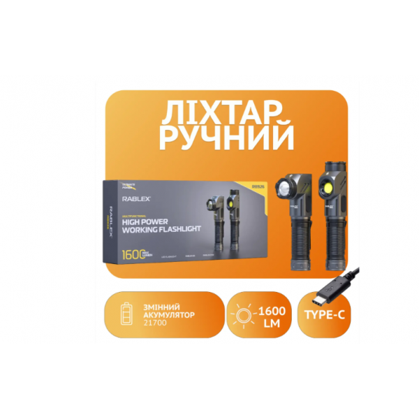 Ручний ліхтар Rablex RB926 — це ваш надійний джерело світла в найрізноманітніших умовах. Корпус ліхтаря виконаний з міцного алюмінієвого сплаву, що забезпечує йому стійкість до механічних пошкоджень та захист від зовнішніх факторів. З повсякденним вологозахистом ви можете не турбуватися про працездатність пристрою в дощ або підвищеній вологості.