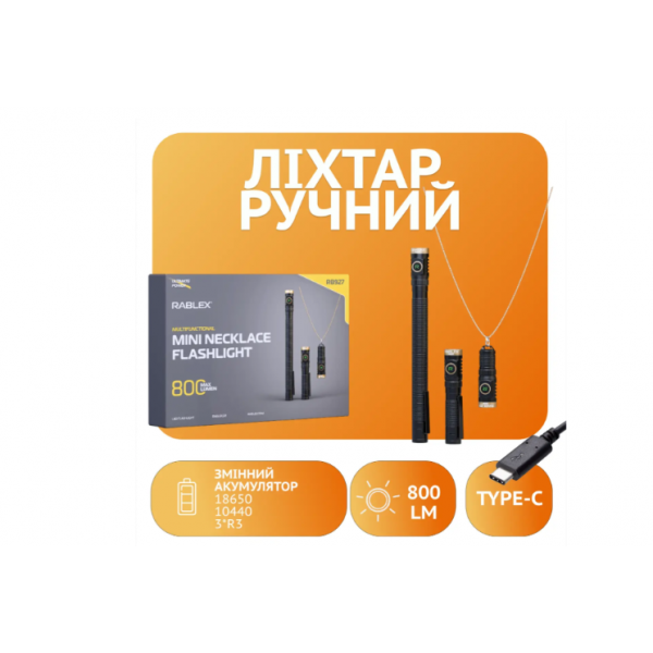 Ручний ліхтар Rablex RB927 оснащений високояскравими світлодіодами TG3 LED, які забезпечують потужне та яскраве світло. Він може працювати на різних джерелах живлення: 1*10180, 1*10440 або 3*R3 батарейках, що робить його універсальним і зручним для використання в будь-яких умовах. Завдяки знімному акумулятору 10440, ви можете легко замінити батарею, коли це необхідно.