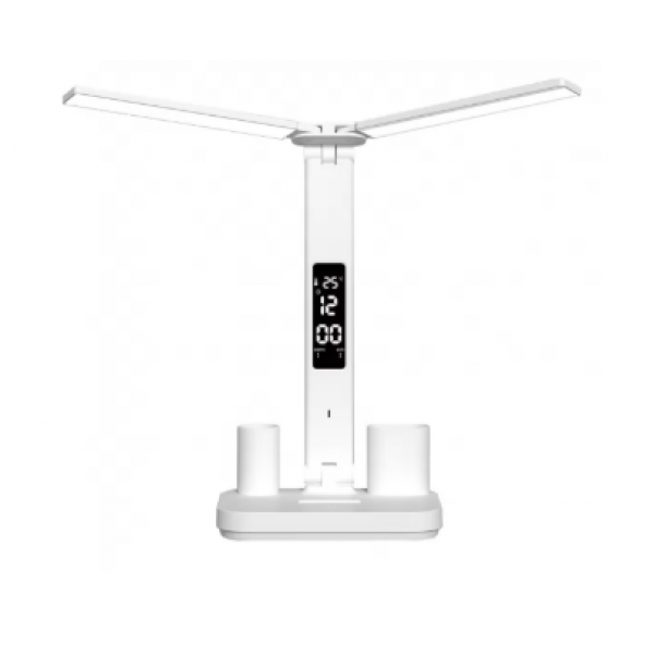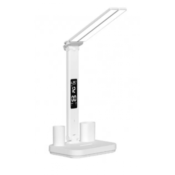 Світлодіодний настільний світильник Luxel 6W, акумулятор, USB, лед екран, органайзер (TL-16W) Білий