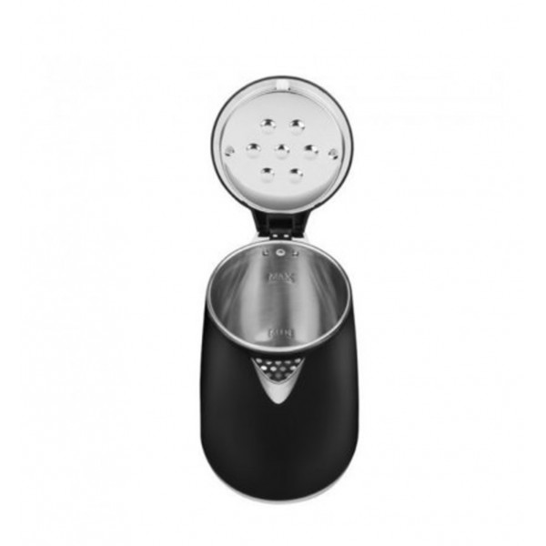 • Потужність, Вт: 1750 • Обсяг, л: 2 • Матеріал корпусу: Нержавіюча сталь/пластик • Індикація роботи • Шкала рівня води: Внутрішнє • Довжина мережевого шнура, м: 0,7 • Відсік для мережевого шнура • Автовідключення • Нагрівальний елемент: прихований (дисковий) • Тип фільтра: Отвори • Обертання чайника на 360° • Підключення до мережі через підставку • Блокування кришки • Авто вимикання без води • Колір: Чорний •
